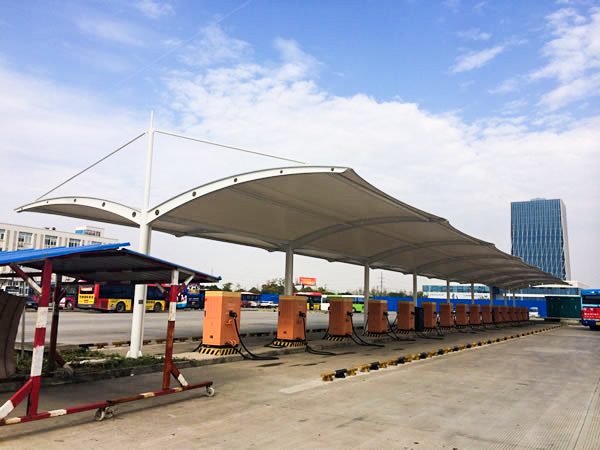4.膜结构充电棚-膜材的价格咱们要在功能接近或许相同的情况下挑选较为廉价的膜材。膜结构充电棚-这样既能满足功能需求又能节约费用。