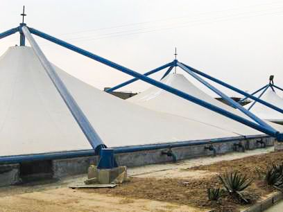 两者的区别就是膜结构可以从根本上解决污水池内废气对钢结构等部件的腐蚀,延长钢结构的使用寿命,增加了反吊膜结构的实用性。
